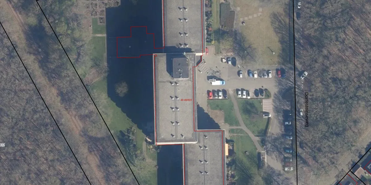 Het perceel waarop Dorresteinseweg 49-216 staat heeft een oppervlakte van 1,8 ha. Dit is een zeer groot perceel. De perceeloppervlakte wordt geregistreerd door het Kadaster. Gedetailleerde informatie over de maten van dit perceel kunt u vinden in het rapport Kadastrale kaart met maatvoering van Dorresteinseweg 49-216.