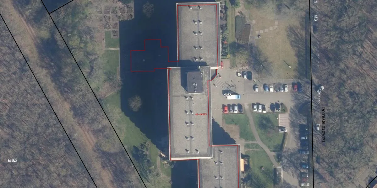 Het perceel waarop Dorresteinseweg 49-607 staat heeft een oppervlakte van 1,8 ha. Dit is een zeer groot perceel. De perceeloppervlakte wordt geregistreerd door het Kadaster. Gedetailleerde informatie over de maten van dit perceel kunt u vinden in het rapport Kadastrale kaart met maatvoering van Dorresteinseweg 49-607.