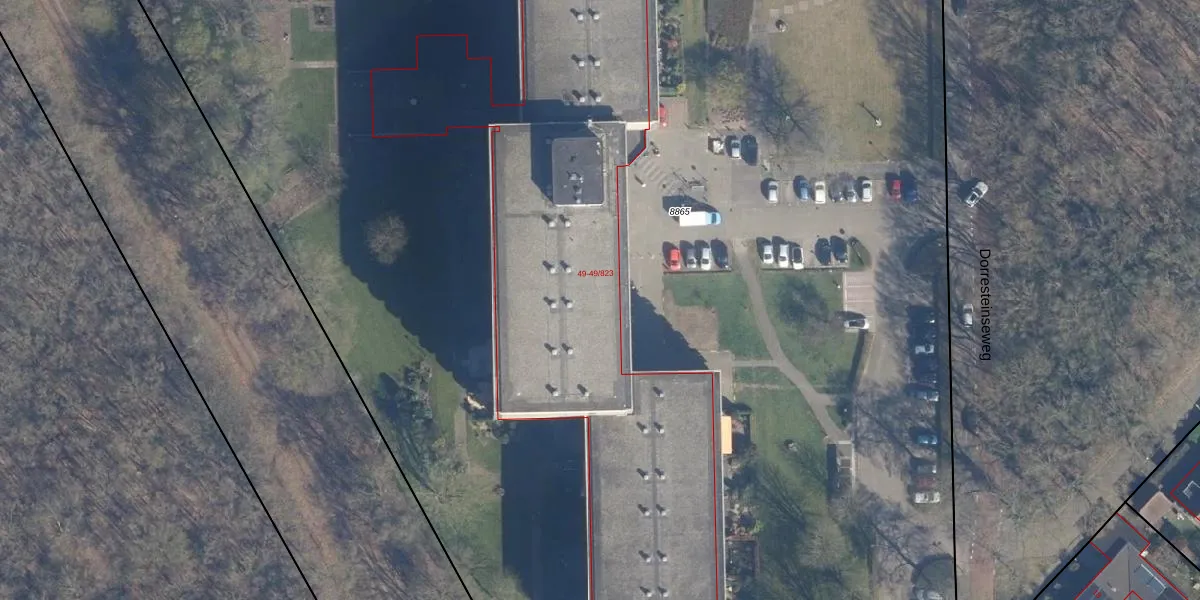 Het perceel waarop Dorresteinseweg 49-128 staat heeft een oppervlakte van 1,8 ha. Dit is een zeer groot perceel. De perceeloppervlakte wordt geregistreerd door het Kadaster. Gedetailleerde informatie over de maten van dit perceel kunt u vinden in het rapport Kadastrale kaart met maatvoering van Dorresteinseweg 49-128.
