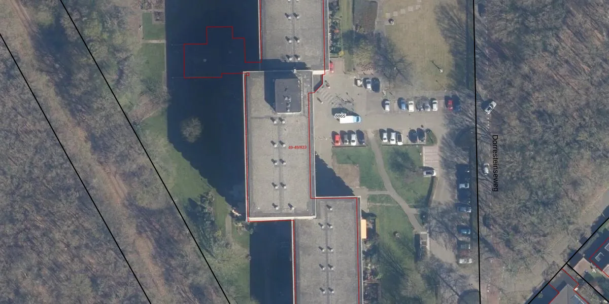 Het perceel waarop Dorresteinseweg 49-24 staat heeft een oppervlakte van 1,8 ha. Dit is een zeer groot perceel. De perceeloppervlakte wordt geregistreerd door het Kadaster. Gedetailleerde informatie over de maten van dit perceel kunt u vinden in het rapport Kadastrale kaart met maatvoering van Dorresteinseweg 49-24.