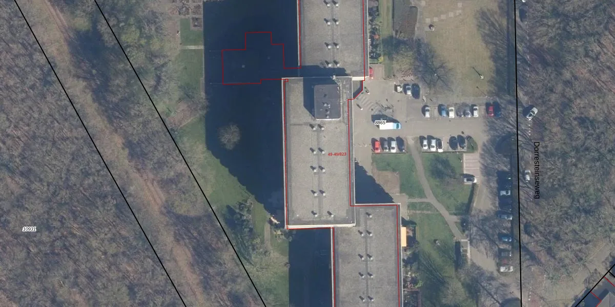 Het perceel waarop Dorresteinseweg 49-822 staat heeft een oppervlakte van 1,8 ha. Dit is een zeer groot perceel. De perceeloppervlakte wordt geregistreerd door het Kadaster. Gedetailleerde informatie over de maten van dit perceel kunt u vinden in het rapport Kadastrale kaart met maatvoering van Dorresteinseweg 49-822.