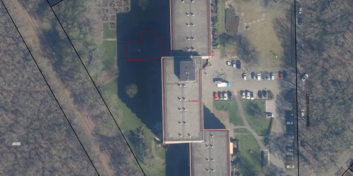Het perceel waarop Dorresteinseweg 49-812 staat heeft een oppervlakte van 1,8 ha. Dit is een zeer groot perceel. De perceeloppervlakte wordt geregistreerd door het Kadaster. Gedetailleerde informatie over de maten van dit perceel kunt u vinden in het rapport Kadastrale kaart met maatvoering van Dorresteinseweg 49-812.