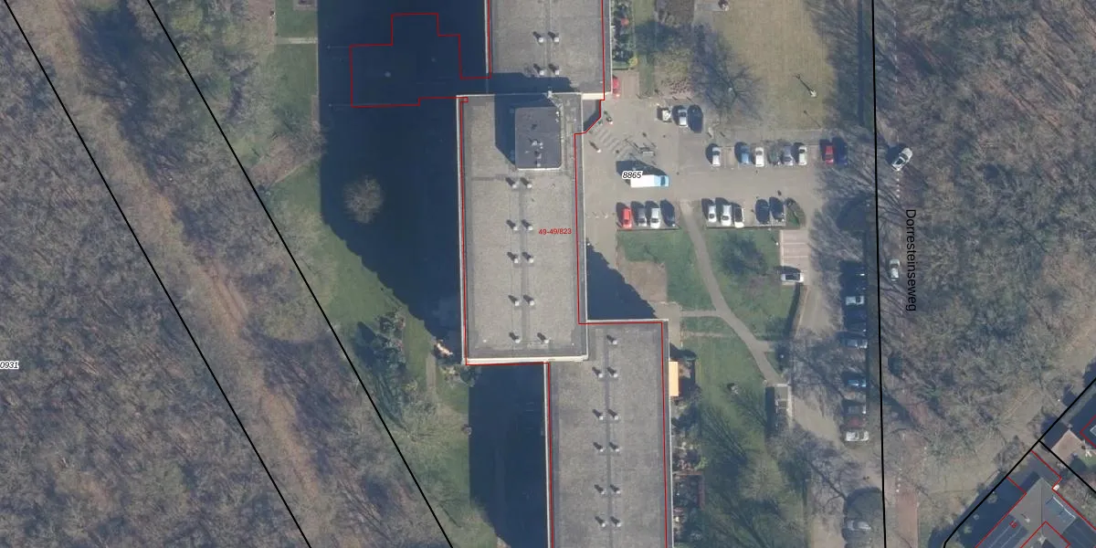 Het perceel waarop Dorresteinseweg 49-333 staat heeft een oppervlakte van 1,8 ha. Dit is een zeer groot perceel. De perceeloppervlakte wordt geregistreerd door het Kadaster. Gedetailleerde informatie over de maten van dit perceel kunt u vinden in het rapport Kadastrale kaart met maatvoering van Dorresteinseweg 49-333.