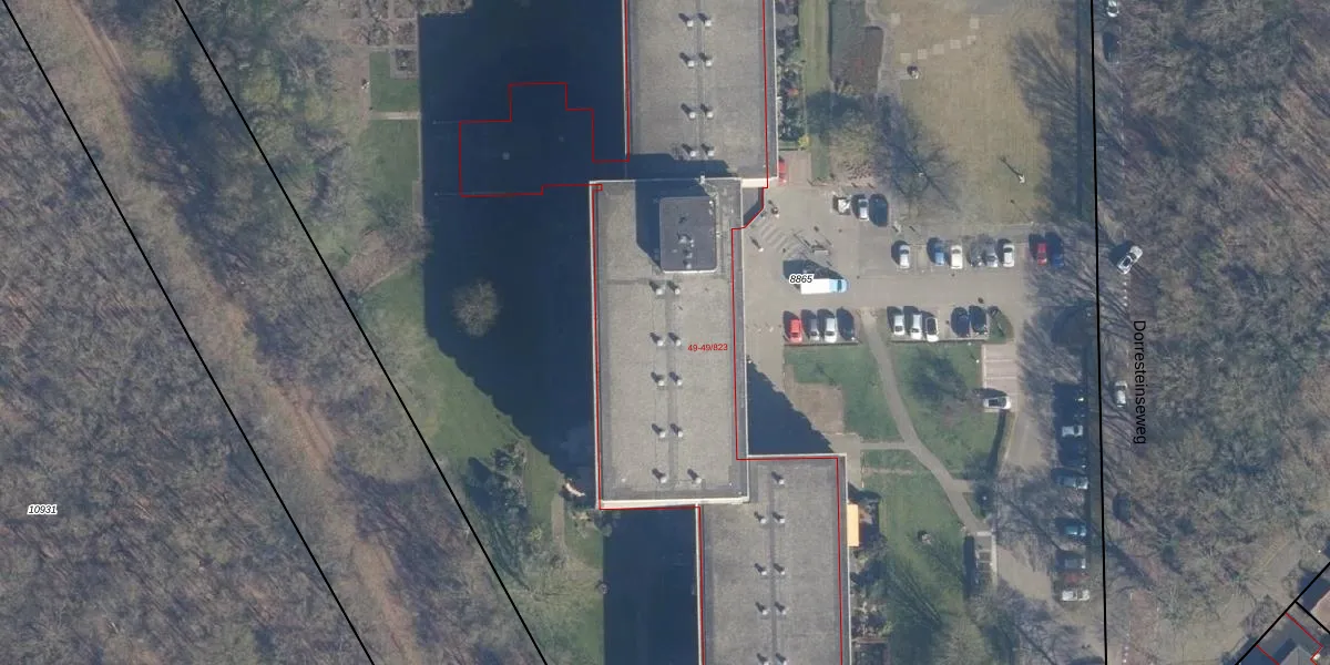 Het perceel waarop Dorresteinseweg 49-619 staat heeft een oppervlakte van 1,8 ha. Dit is een zeer groot perceel. De perceeloppervlakte wordt geregistreerd door het Kadaster. Gedetailleerde informatie over de maten van dit perceel kunt u vinden in het rapport Kadastrale kaart met maatvoering van Dorresteinseweg 49-619.