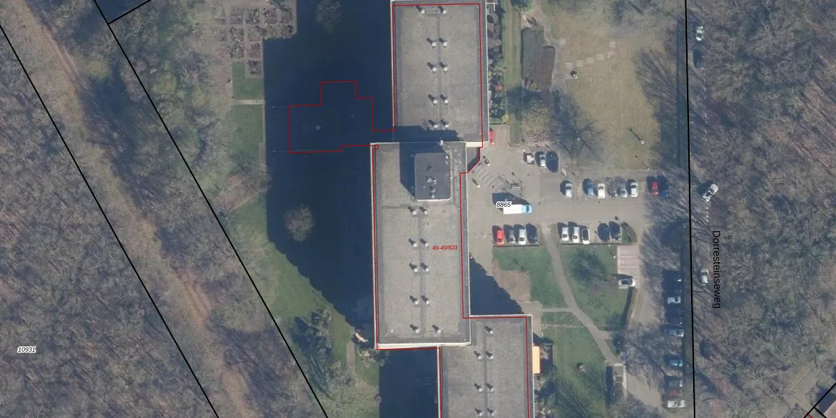 Het perceel waarop Dorresteinseweg 49-609 staat heeft een oppervlakte van 1,8 ha. Dit is een zeer groot perceel. De perceeloppervlakte wordt geregistreerd door het Kadaster. Gedetailleerde informatie over de maten van dit perceel kunt u vinden in het rapport Kadastrale kaart met maatvoering van Dorresteinseweg 49-609.