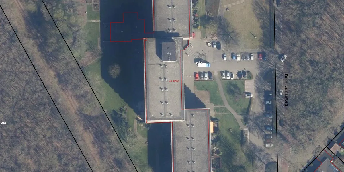 Het perceel waarop Dorresteinseweg 49-326 staat heeft een oppervlakte van 1,8 ha. Dit is een zeer groot perceel. De perceeloppervlakte wordt geregistreerd door het Kadaster. Gedetailleerde informatie over de maten van dit perceel kunt u vinden in het rapport Kadastrale kaart met maatvoering van Dorresteinseweg 49-326.