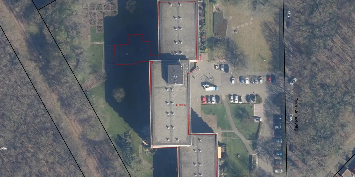 Het perceel waarop Dorresteinseweg 49-309 staat heeft een oppervlakte van 1,8 ha. Dit is een zeer groot perceel. De perceeloppervlakte wordt geregistreerd door het Kadaster. Gedetailleerde informatie over de maten van dit perceel kunt u vinden in het rapport Kadastrale kaart met maatvoering van Dorresteinseweg 49-309.
