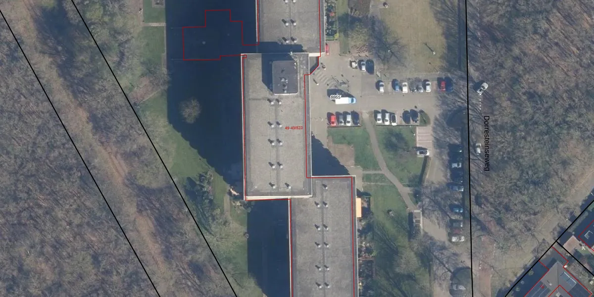 Het perceel waarop Dorresteinseweg 49-132 staat heeft een oppervlakte van 1,8 ha. Dit is een zeer groot perceel. De perceeloppervlakte wordt geregistreerd door het Kadaster. Gedetailleerde informatie over de maten van dit perceel kunt u vinden in het rapport Kadastrale kaart met maatvoering van Dorresteinseweg 49-132.