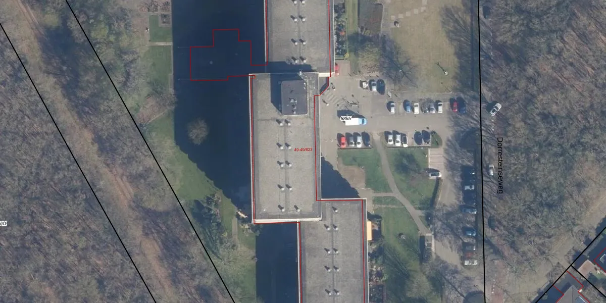 Het perceel waarop Dorresteinseweg 49-223 staat heeft een oppervlakte van 1,8 ha. Dit is een zeer groot perceel. De perceeloppervlakte wordt geregistreerd door het Kadaster. Gedetailleerde informatie over de maten van dit perceel kunt u vinden in het rapport Kadastrale kaart met maatvoering van Dorresteinseweg 49-223.