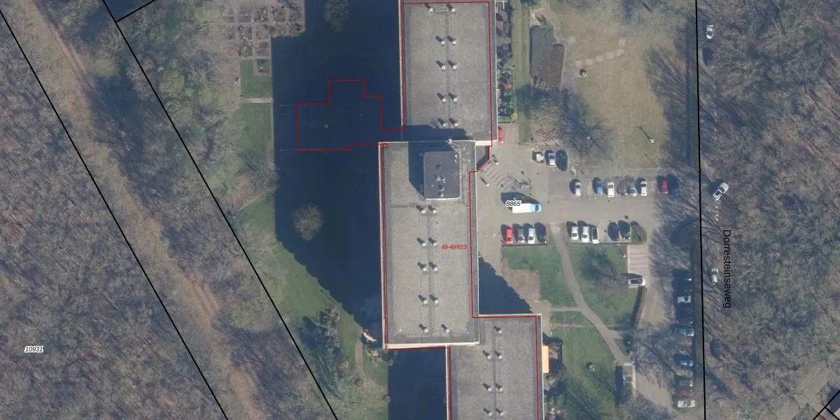 Het perceel waarop Dorresteinseweg 49-710 staat heeft een oppervlakte van 1,8 ha. Dit is een zeer groot perceel. De perceeloppervlakte wordt geregistreerd door het Kadaster. Gedetailleerde informatie over de maten van dit perceel kunt u vinden in het rapport Kadastrale kaart met maatvoering van Dorresteinseweg 49-710.