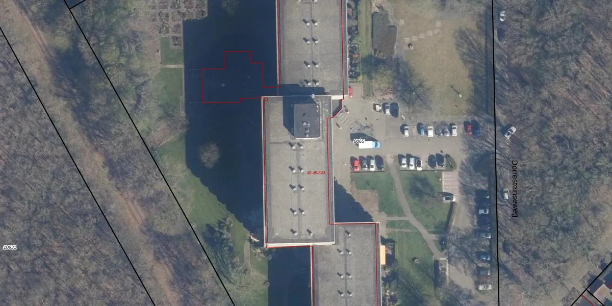 Het perceel waarop Dorresteinseweg 49-413 staat heeft een oppervlakte van 1,8 ha. Dit is een zeer groot perceel. De perceeloppervlakte wordt geregistreerd door het Kadaster. Gedetailleerde informatie over de maten van dit perceel kunt u vinden in het rapport Kadastrale kaart met maatvoering van Dorresteinseweg 49-413.