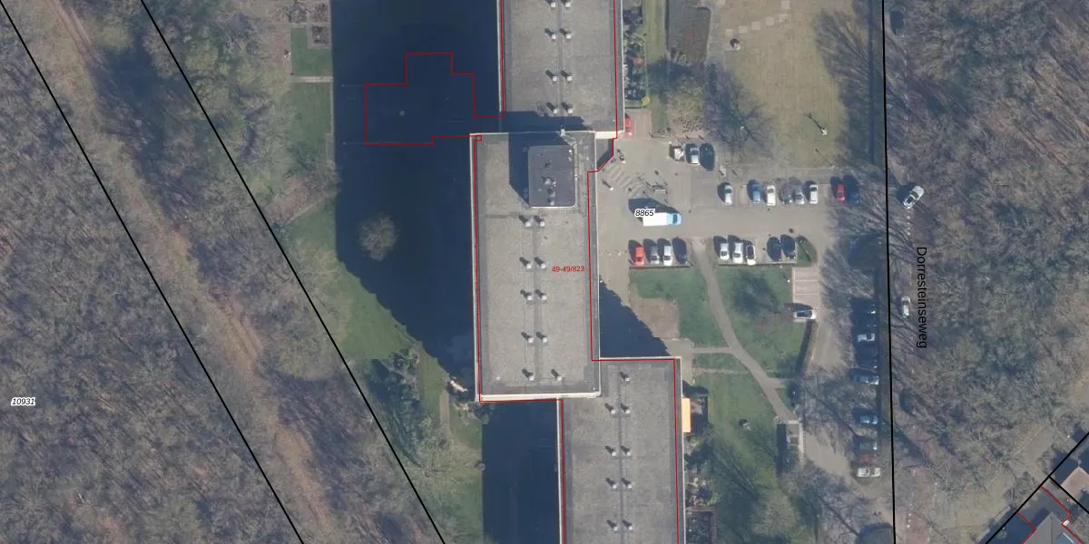 Dorresteinseweg 49-523 is gelegen op kadastraal perceel AMF00B8865. Deze kadastrale aanduiding is uniek en wordt gebruikt door het Kadaster om eigendomsrechten en andere zakelijke rechten vast te leggen. Het perceel maakt onderdeel uit van de kadastrale gemeente Amersfoort.