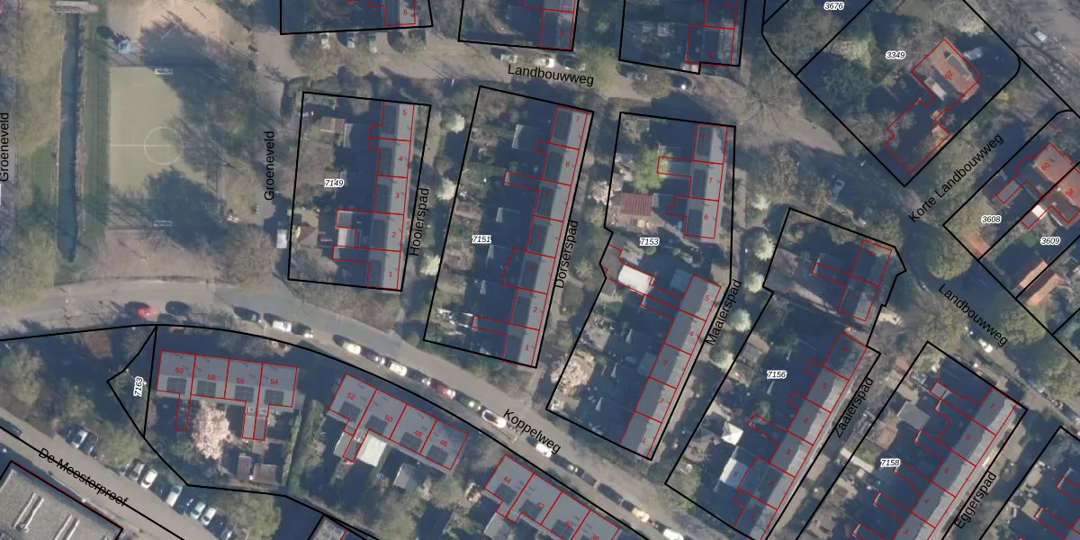 Het perceel waarop Dorserspad 3 staat heeft een oppervlakte van 1020 m². Dit is een zeer groot perceel. De perceeloppervlakte wordt geregistreerd door het Kadaster. Gedetailleerde informatie over de maten van dit perceel kunt u vinden in het rapport Kadastrale kaart met maatvoering van Dorserspad 3.