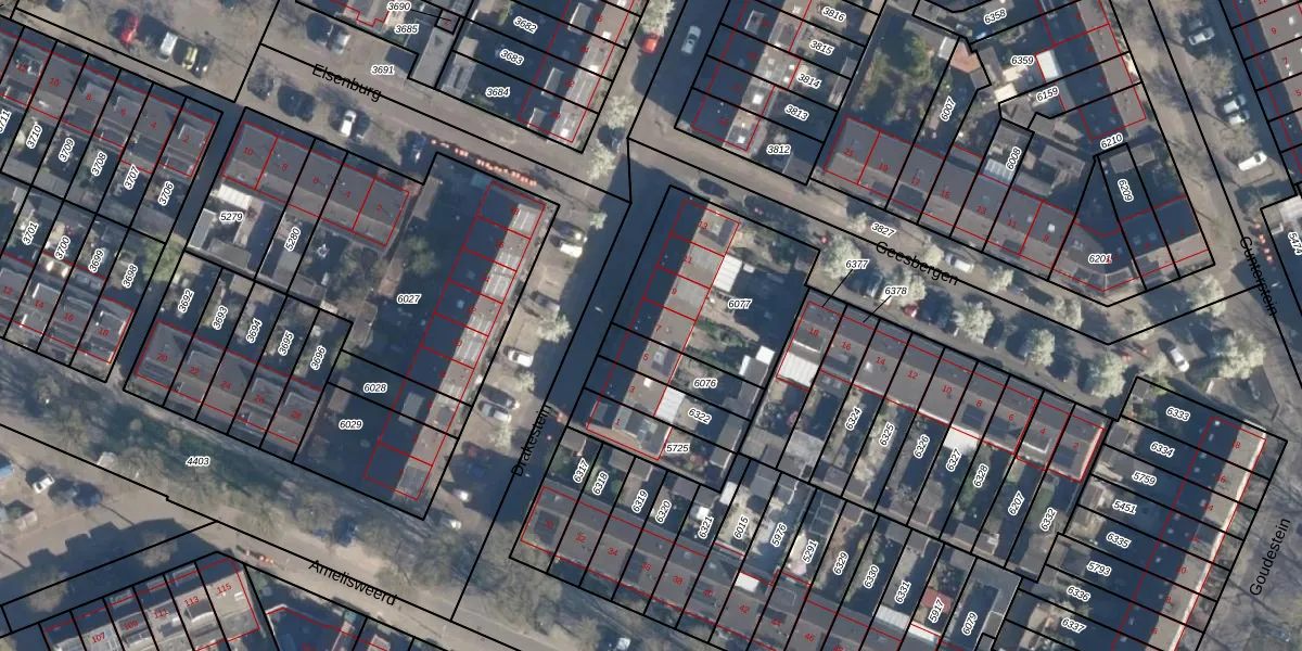 Het adres is gelegen op perceel 6077 in de sectie K en de kadastrale gemeente Amersfoort. De kadastrale aanduiding is aldus AMF00-K-6077. Het perceel is kleiner dan gemiddeld in Amersfoort. Het perceel is 590 m² groot, terwijl het gemiddelde ligt op 959,94 m². De grootste perceeloppervlakte in de kadastrale gemeente is 1,12 km². De kleinste oppervlakte bedraagt 0 m². Er zijn 4 adressen aanwezig op het perceel. De laatste wijziging in het de Basisregistratie Kadaster (BRK) was op 23-05-2011.