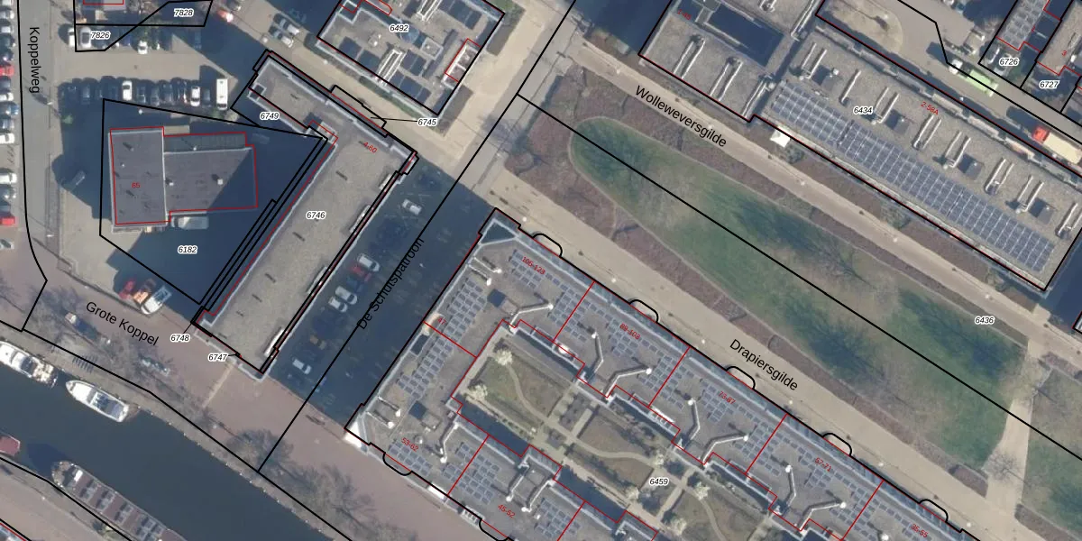 Het perceel waarop Drapiersgilde 115 staat heeft een oppervlakte van 5383 m². Dit is een zeer groot perceel. De perceeloppervlakte wordt geregistreerd door het Kadaster. Gedetailleerde informatie over de maten van dit perceel kunt u vinden in het rapport Kadastrale kaart met maatvoering van Drapiersgilde 115.
