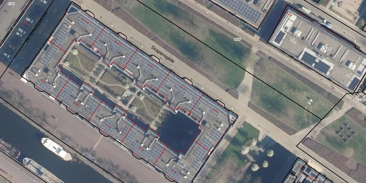 Het perceel waarop Drapiersgilde 69 staat heeft een oppervlakte van 5383 m². Dit is een zeer groot perceel. De perceeloppervlakte wordt geregistreerd door het Kadaster. Gedetailleerde informatie over de maten van dit perceel kunt u vinden in het rapport Kadastrale kaart met maatvoering van Drapiersgilde 69.