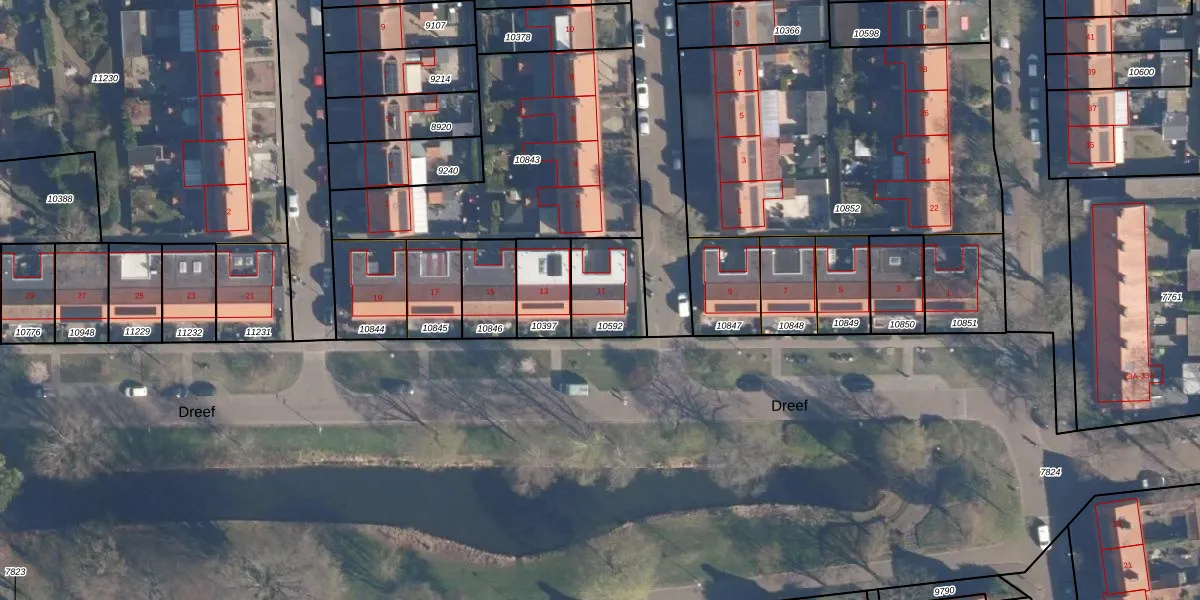 Gebruik de zoekbalk of klik op een perceel voor informatie over de adressen binnen dit perceel.