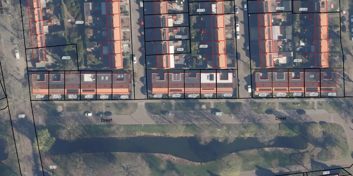Het perceel waarop Dreef 17 staat heeft een oppervlakte van 152 m². Dit is een middelgroot perceel. De perceeloppervlakte wordt geregistreerd door het Kadaster. Gedetailleerde informatie over de maten van dit perceel kunt u vinden in het rapport Kadastrale kaart met maatvoering van Dreef 17.