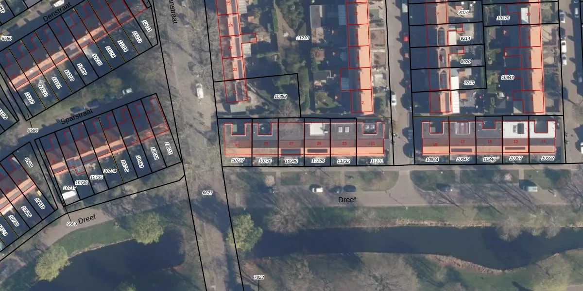 Het perceel waarop Dreef 27 staat heeft een oppervlakte van 150 m². Dit is een middelgroot perceel. De perceeloppervlakte wordt geregistreerd door het Kadaster. Gedetailleerde informatie over de maten van dit perceel kunt u vinden in het rapport Kadastrale kaart met maatvoering van Dreef 27.