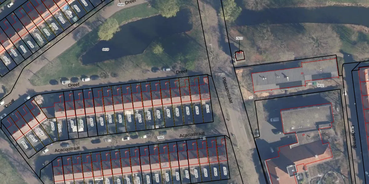 Gebruik de zoekbalk of klik op een perceel voor informatie over de adressen binnen dit perceel.