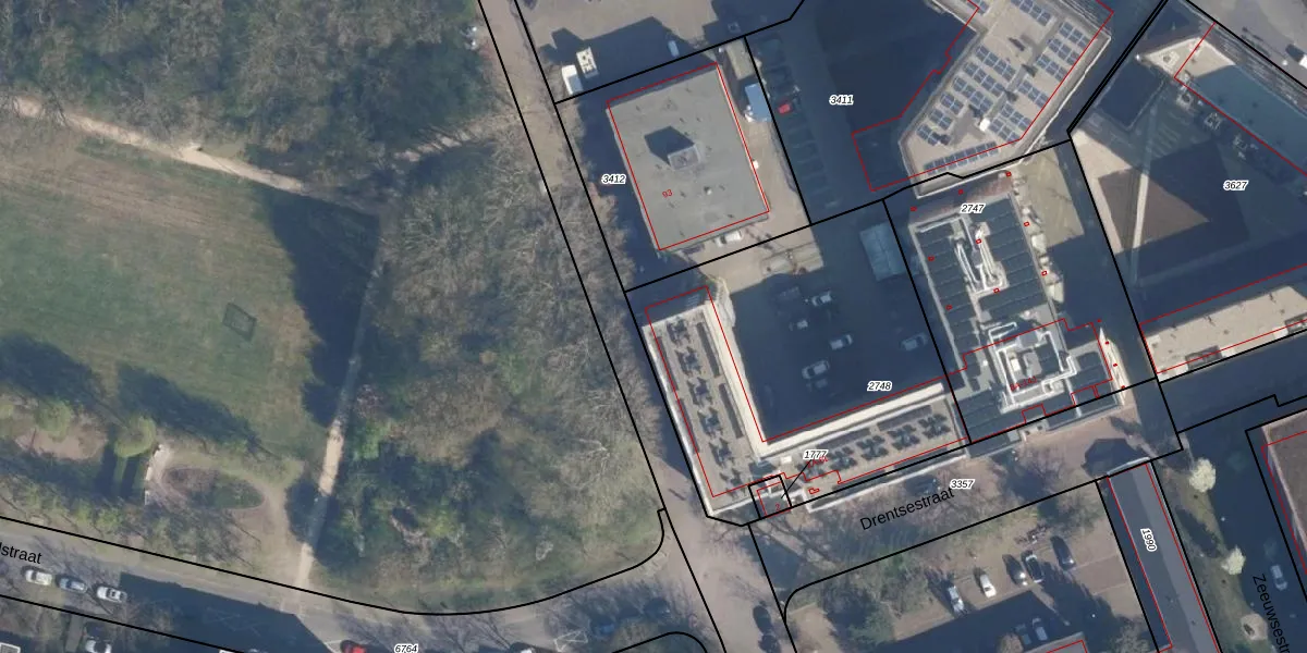 Het perceel waarop Drentsestraat 2-A staat heeft een oppervlakte van 1654 m². Dit is een zeer groot perceel. De perceeloppervlakte wordt geregistreerd door het Kadaster. Gedetailleerde informatie over de maten van dit perceel kunt u vinden in het rapport Kadastrale kaart met maatvoering van Drentsestraat 2-A.