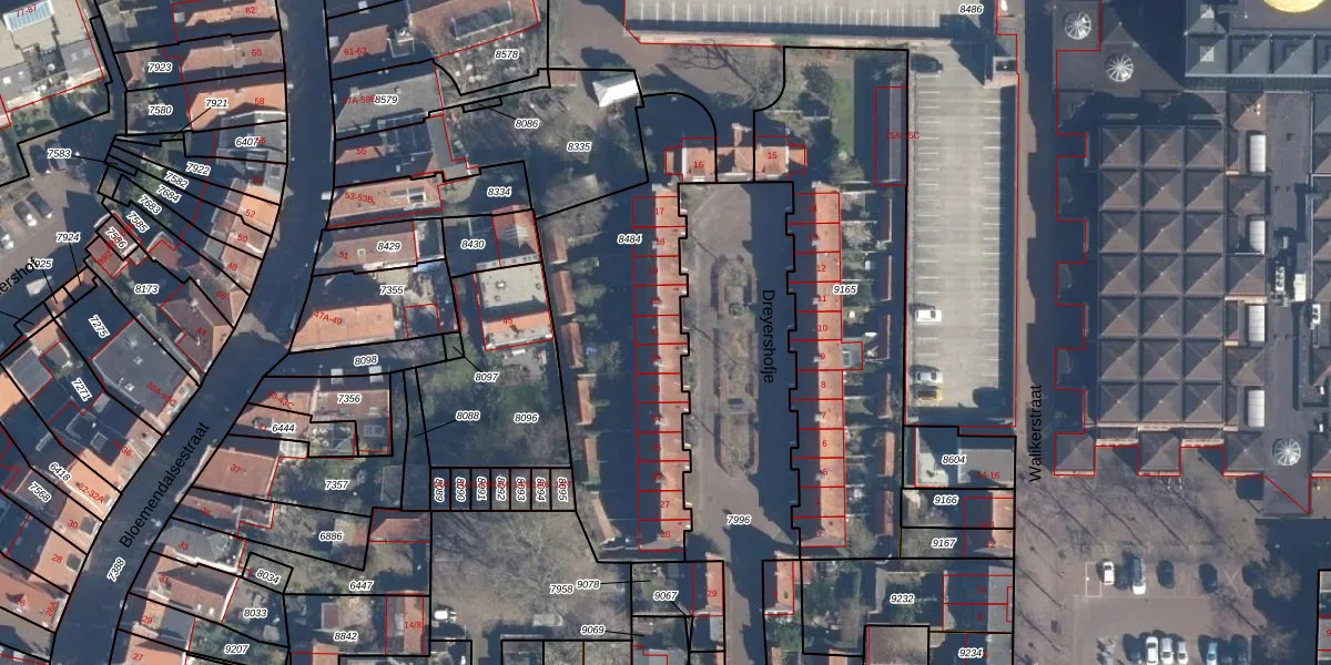 Het perceel waarop Dreyershofje 21 staat heeft een oppervlakte van 1163 m². Dit is een zeer groot perceel. De perceeloppervlakte wordt geregistreerd door het Kadaster. Gedetailleerde informatie over de maten van dit perceel kunt u vinden in het rapport Kadastrale kaart met maatvoering van Dreyershofje 21.