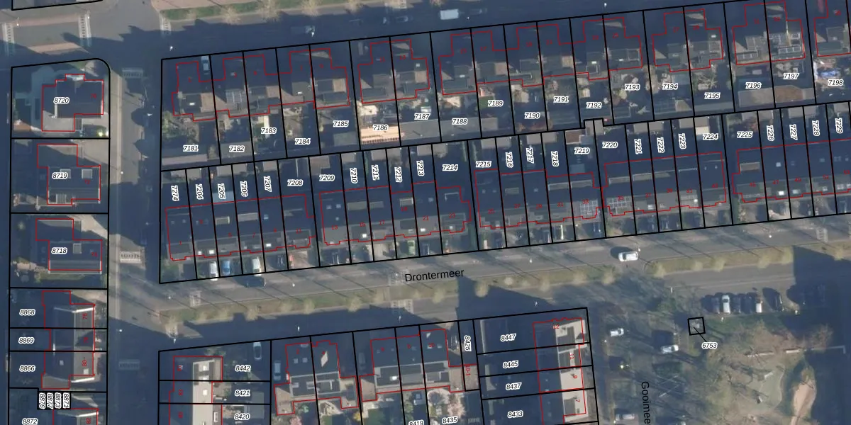 Het perceel waarop Drontermeer 21 staat heeft een oppervlakte van 142 m². Dit is een middelgroot perceel. De perceeloppervlakte wordt geregistreerd door het Kadaster. Gedetailleerde informatie over de maten van dit perceel kunt u vinden in het rapport Kadastrale kaart met maatvoering van Drontermeer 21.