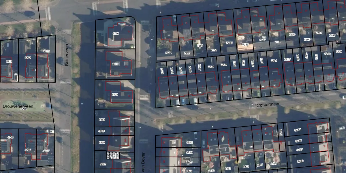 Het perceel waarop Drontermeer 3 staat heeft een oppervlakte van 142 m². Dit is een middelgroot perceel. De perceeloppervlakte wordt geregistreerd door het Kadaster. Gedetailleerde informatie over de maten van dit perceel kunt u vinden in het rapport Kadastrale kaart met maatvoering van Drontermeer 3.