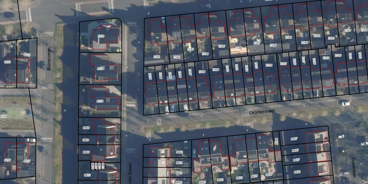 Het perceel waarop Drontermeer 7 staat heeft een oppervlakte van 142 m². Dit is een middelgroot perceel. De perceeloppervlakte wordt geregistreerd door het Kadaster. Gedetailleerde informatie over de maten van dit perceel kunt u vinden in het rapport Kadastrale kaart met maatvoering van Drontermeer 7.