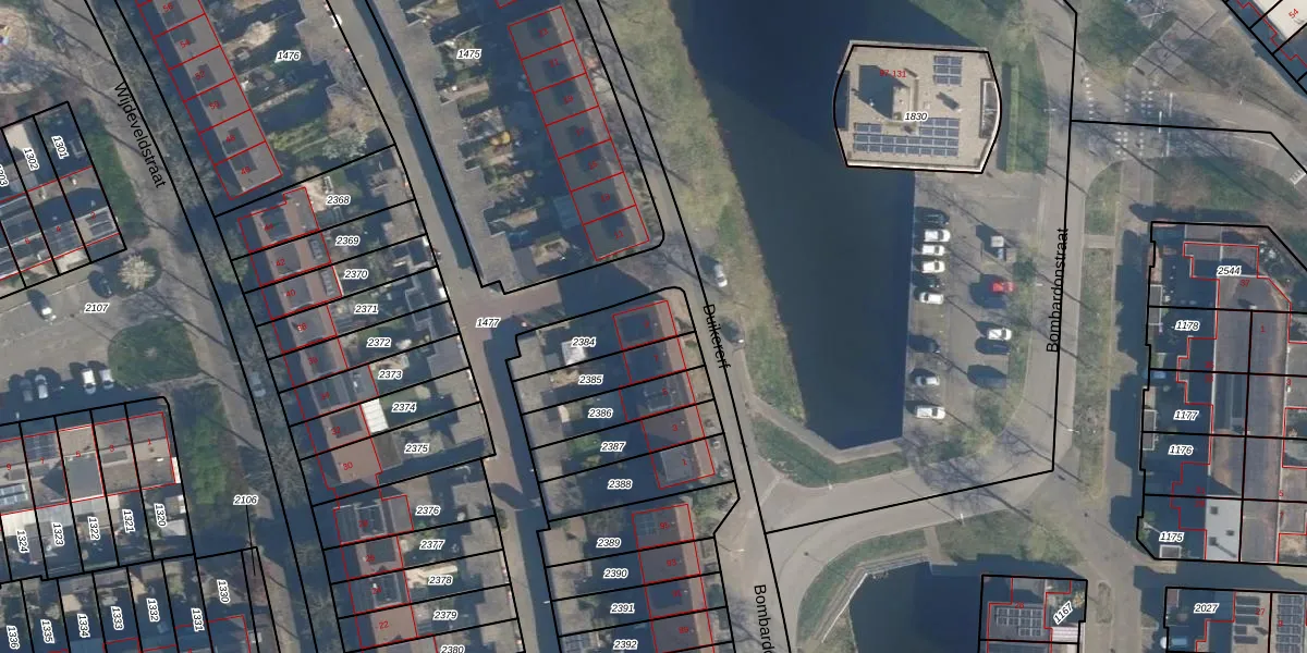 Gebruik de zoekbalk of klik op een perceel voor informatie over de adressen binnen dit perceel.