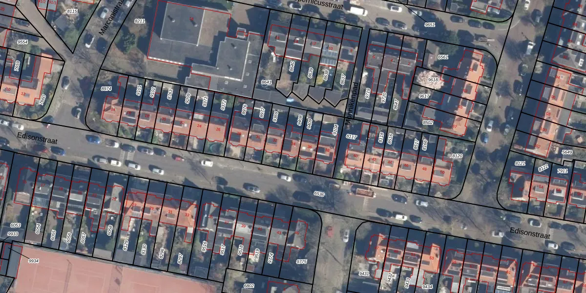 Het perceel waarop Edisonstraat 34 staat heeft een oppervlakte van 127 m². Dit is een middelgroot perceel. De perceeloppervlakte wordt geregistreerd door het Kadaster. Gedetailleerde informatie over de maten van dit perceel kunt u vinden in het rapport Kadastrale kaart met maatvoering van Edisonstraat 34.