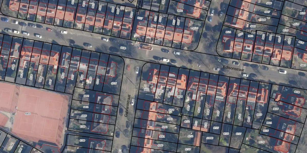 Het perceel waarop Edisonstraat 47 staat heeft een oppervlakte van 275 m². Dit is een middelgroot perceel. De perceeloppervlakte wordt geregistreerd door het Kadaster. Gedetailleerde informatie over de maten van dit perceel kunt u vinden in het rapport Kadastrale kaart met maatvoering van Edisonstraat 47.