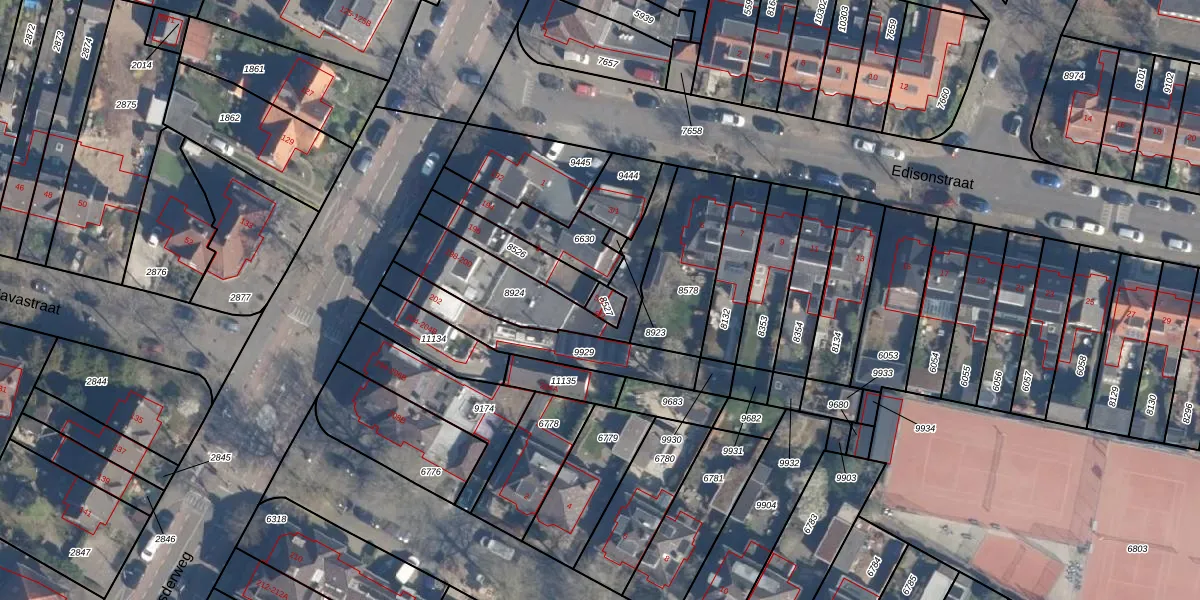 Het perceel waarop Edisonstraat 5-1 staat heeft een oppervlakte van 27 m². Dit is een klein perceel. De perceeloppervlakte wordt geregistreerd door het Kadaster. Gedetailleerde informatie over de maten van dit perceel kunt u vinden in het rapport Kadastrale kaart met maatvoering van Edisonstraat 5-1.