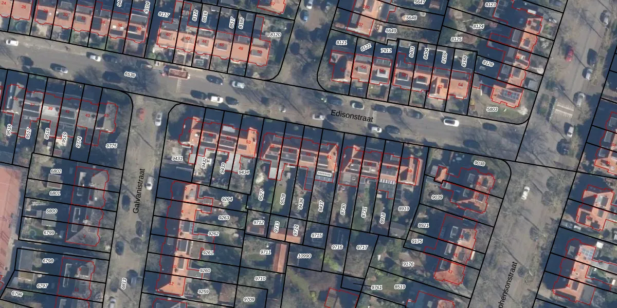 Het perceel waarop Edisonstraat 59 staat heeft een oppervlakte van 185 m². Dit is een middelgroot perceel. De perceeloppervlakte wordt geregistreerd door het Kadaster. Gedetailleerde informatie over de maten van dit perceel kunt u vinden in het rapport Kadastrale kaart met maatvoering van Edisonstraat 59.
