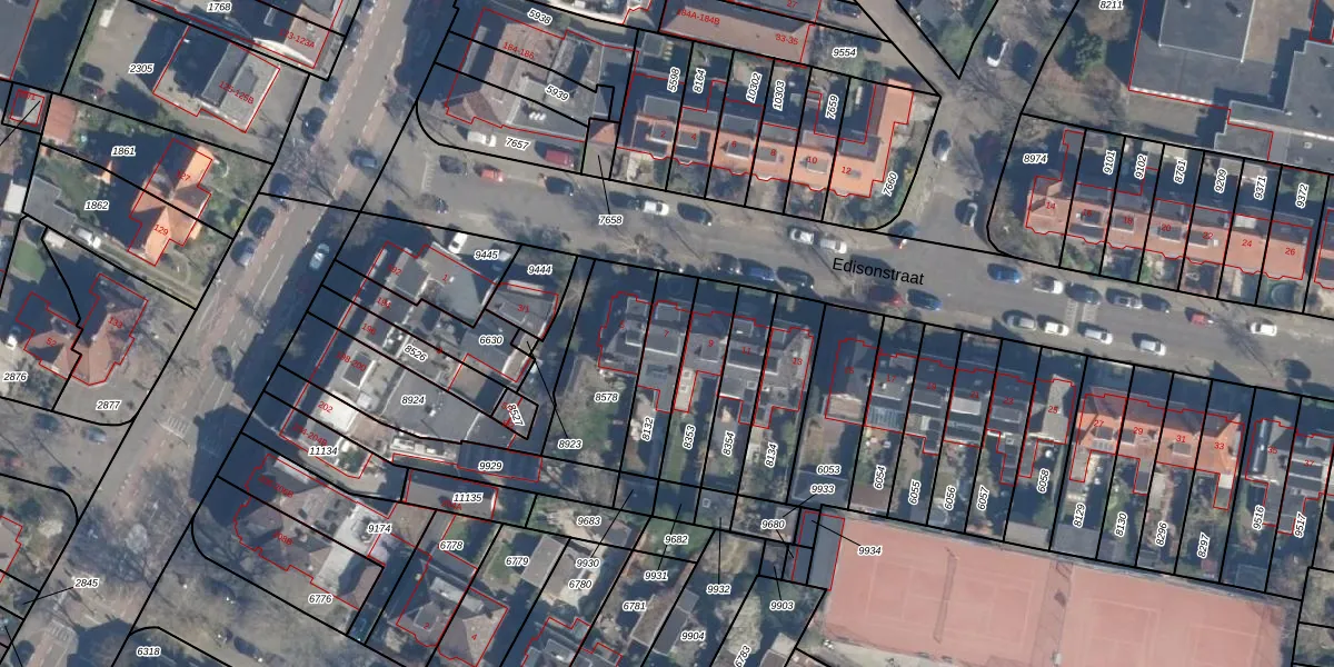 Het perceel waarop Edisonstraat 7 staat heeft een oppervlakte van 188 m². Dit is een middelgroot perceel. De perceeloppervlakte wordt geregistreerd door het Kadaster. Gedetailleerde informatie over de maten van dit perceel kunt u vinden in het rapport Kadastrale kaart met maatvoering van Edisonstraat 7.