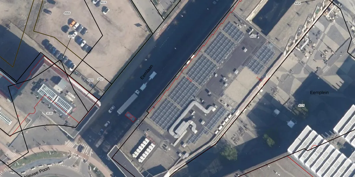 Het perceel waarop Eemlaan 3 staat heeft een oppervlakte van 5835 m². Dit is een zeer groot perceel. De perceeloppervlakte wordt geregistreerd door het Kadaster. Gedetailleerde informatie over de maten van dit perceel kunt u vinden in het rapport Kadastrale kaart met maatvoering van Eemlaan 3.