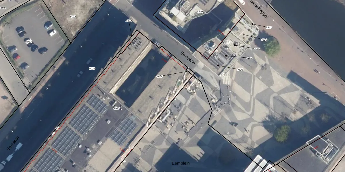 Het perceel waarop Eemplein 40 staat heeft een oppervlakte van 5835 m². Dit is een zeer groot perceel. De perceeloppervlakte wordt geregistreerd door het Kadaster. Gedetailleerde informatie over de maten van dit perceel kunt u vinden in het rapport Kadastrale kaart met maatvoering van Eemplein 40.