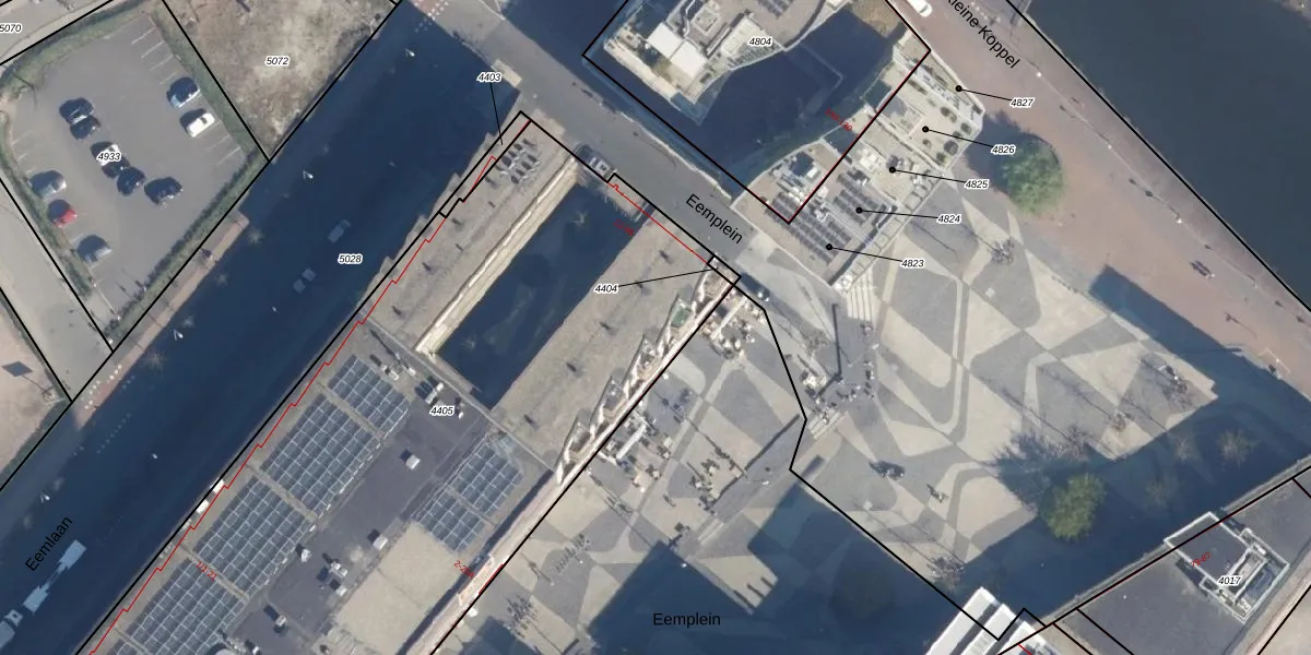 Het perceel waarop Eemplein 60 staat heeft een oppervlakte van 5835 m². Dit is een zeer groot perceel. De perceeloppervlakte wordt geregistreerd door het Kadaster. Gedetailleerde informatie over de maten van dit perceel kunt u vinden in het rapport Kadastrale kaart met maatvoering van Eemplein 60.