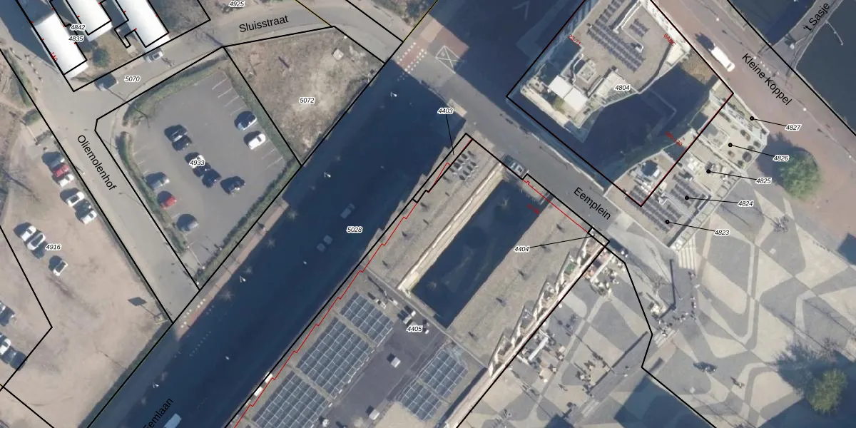 Het perceel waarop Eemplein 94 staat heeft een oppervlakte van 5835 m². Dit is een zeer groot perceel. De perceeloppervlakte wordt geregistreerd door het Kadaster. Gedetailleerde informatie over de maten van dit perceel kunt u vinden in het rapport Kadastrale kaart met maatvoering van Eemplein 94.