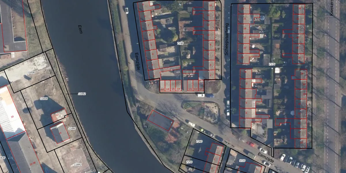 Het perceel waarop Eemzijde 1-5 staat heeft een oppervlakte van 2400 m². Dit is een zeer groot perceel. De perceeloppervlakte wordt geregistreerd door het Kadaster. Gedetailleerde informatie over de maten van dit perceel kunt u vinden in het rapport Kadastrale kaart met maatvoering van Eemzijde 1-5.
