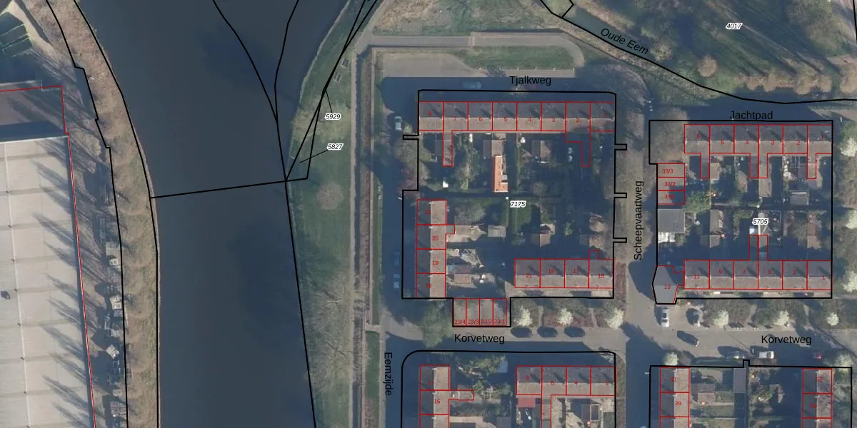 Het perceel waarop Eemzijde 21 staat heeft een oppervlakte van 2415 m². Dit is een zeer groot perceel. De perceeloppervlakte wordt geregistreerd door het Kadaster. Gedetailleerde informatie over de maten van dit perceel kunt u vinden in het rapport Kadastrale kaart met maatvoering van Eemzijde 21.