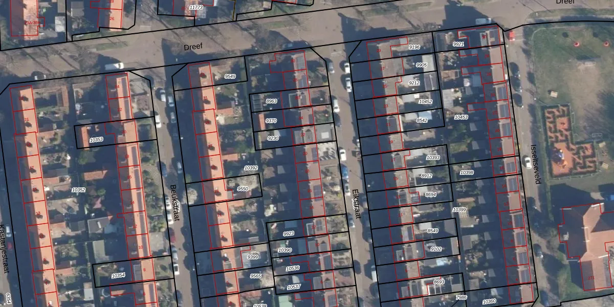 Het adres is gelegen op perceel 10392 in de sectie D en de kadastrale gemeente Amersfoort. De kadastrale aanduiding is aldus AMF00-D-10392. Het perceel is met 2051 m² relatief groot. Het gemiddelde ligt in de kadastrale gemeente Amersfoort op 960,23 m². Het grootste perceel in de kadastrale gemeente is 1,12 km². Het kleinste perceel heeft een oppervlakte van 0 m². Er zijn 12 adressen aanwezig op het perceel. De laatste wijziging in het de Basisregistratie Kadaster (BRK) was op 13-04-2011.