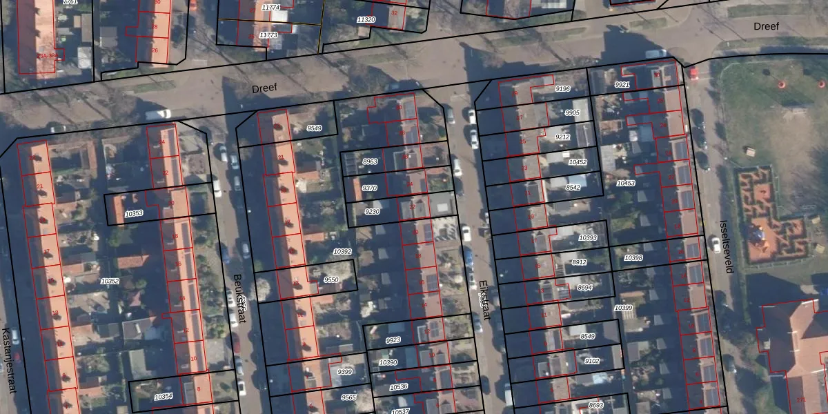 Gebruik de zoekbalk of klik op een perceel voor informatie over de adressen binnen dit perceel.