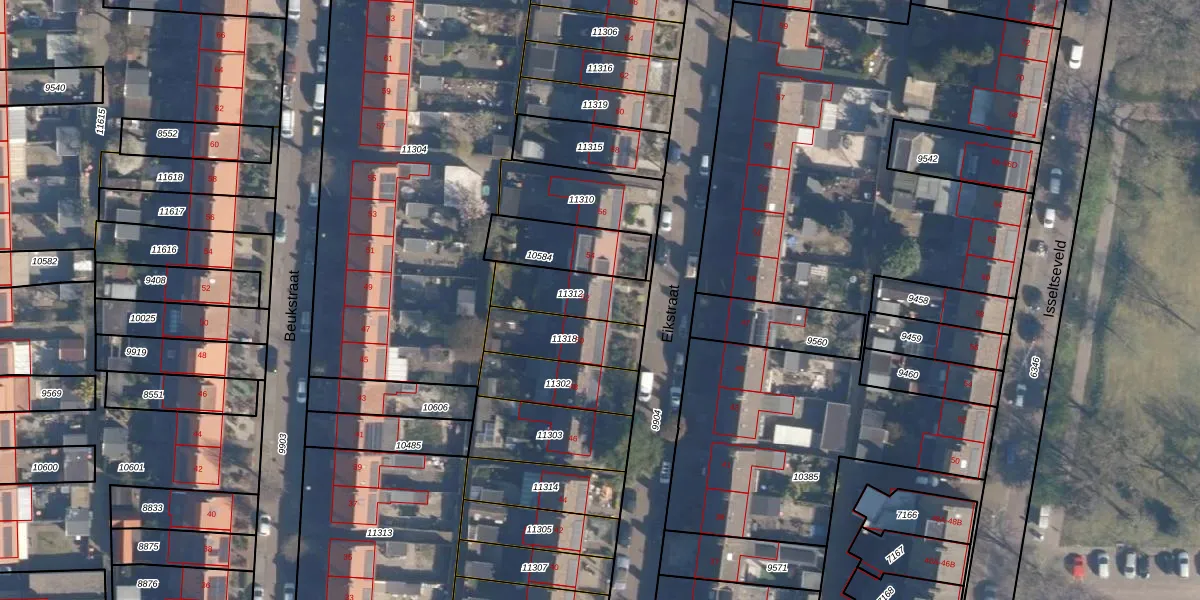 Gebruik de zoekbalk of klik op een perceel voor informatie over de adressen binnen dit perceel.
