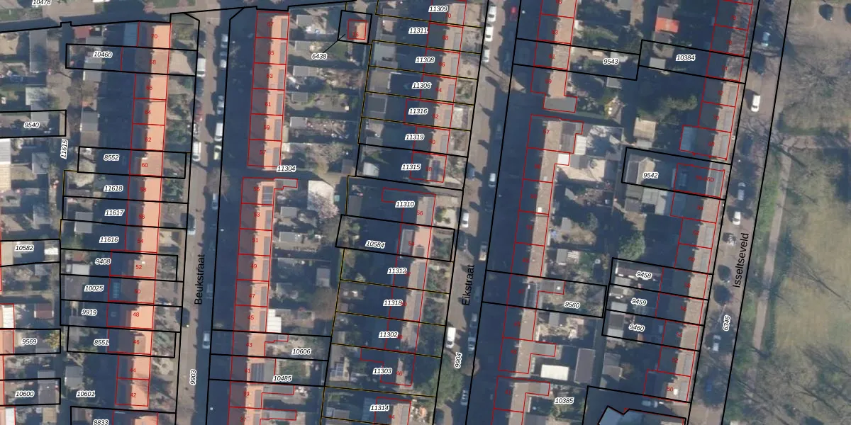Eikstraat 56 is gelegen op kadastraal perceel AMF00D11310. Deze kadastrale aanduiding is uniek en wordt gebruikt door het Kadaster om eigendomsrechten en andere zakelijke rechten vast te leggen. Het perceel maakt onderdeel uit van de kadastrale gemeente Amersfoort.
