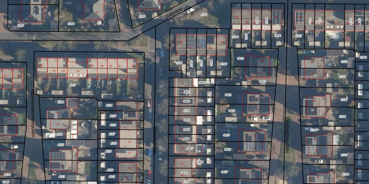 Gebruik de zoekbalk of klik op een perceel voor informatie over de adressen binnen dit perceel.