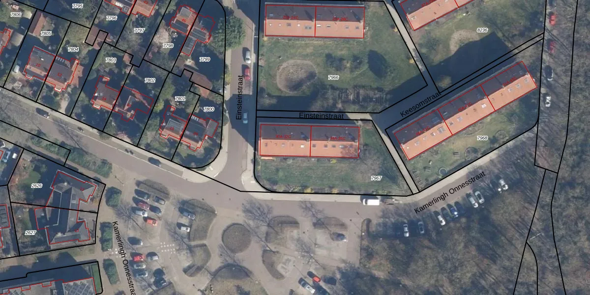 Het perceel waarop Einsteinstraat 30-C staat heeft een oppervlakte van 1185 m². Dit is een zeer groot perceel. De perceeloppervlakte wordt geregistreerd door het Kadaster. Gedetailleerde informatie over de maten van dit perceel kunt u vinden in het rapport Kadastrale kaart met maatvoering van Einsteinstraat 30-C.
