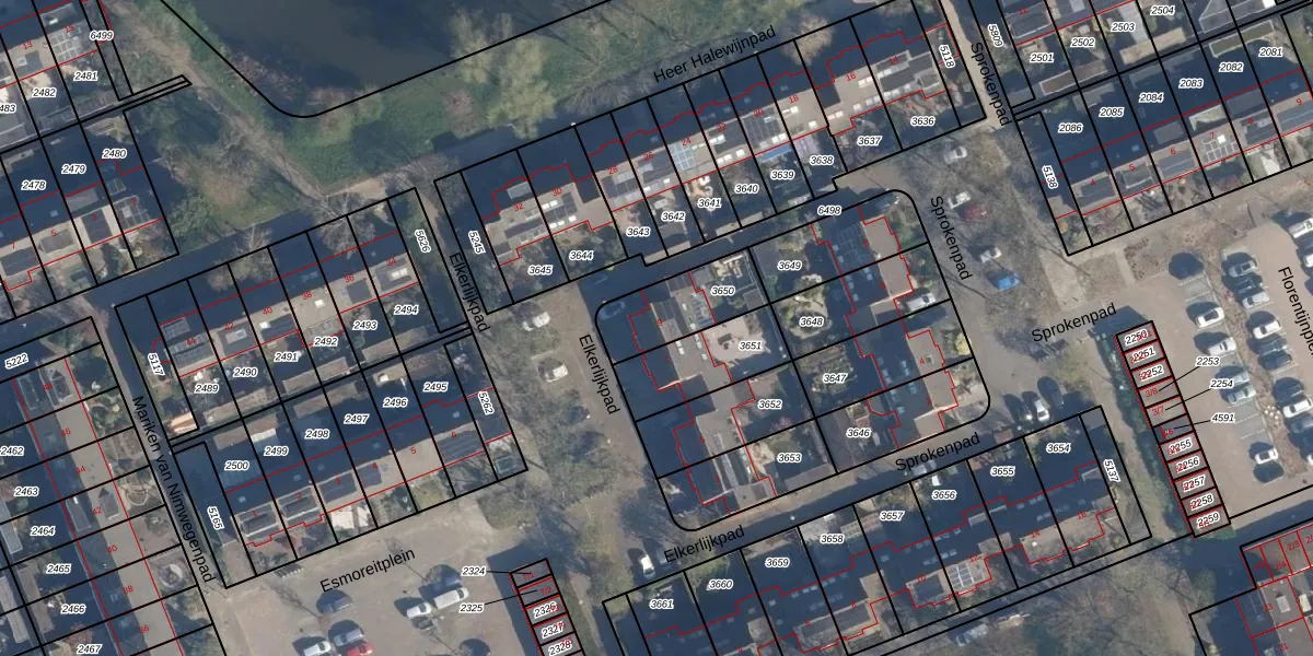 Elkerlijkpad 9 is gelegen op kadastraal perceel AMF00K3650. Deze kadastrale aanduiding is uniek en wordt gebruikt door het Kadaster om eigendomsrechten en andere zakelijke rechten vast te leggen. Het perceel maakt onderdeel uit van de kadastrale gemeente Amersfoort.