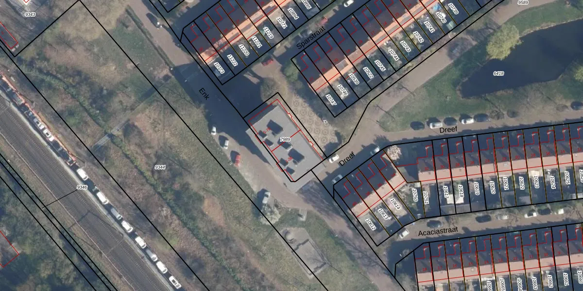 Het perceel waarop Enk 3-E staat heeft een oppervlakte van 399 m². Dit is een groot perceel. De perceeloppervlakte wordt geregistreerd door het Kadaster. Gedetailleerde informatie over de maten van dit perceel kunt u vinden in het rapport Kadastrale kaart met maatvoering van Enk 3-E.