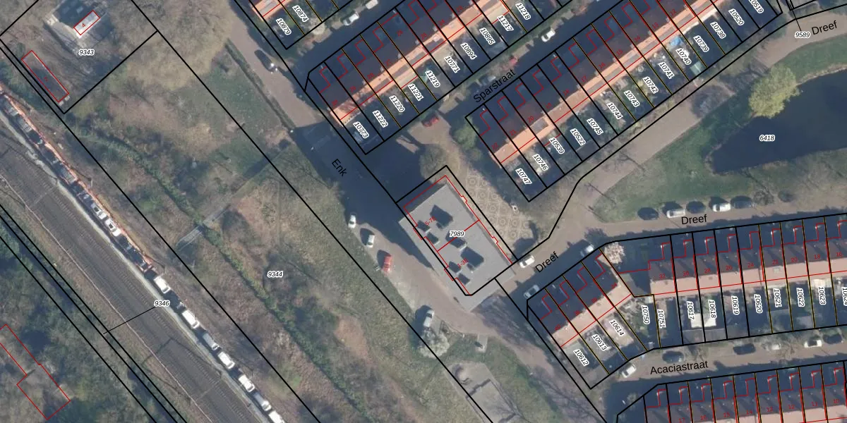 Het perceel waarop Enk 7-B staat heeft een oppervlakte van 399 m². Dit is een groot perceel. De perceeloppervlakte wordt geregistreerd door het Kadaster. Gedetailleerde informatie over de maten van dit perceel kunt u vinden in het rapport Kadastrale kaart met maatvoering van Enk 7-B.